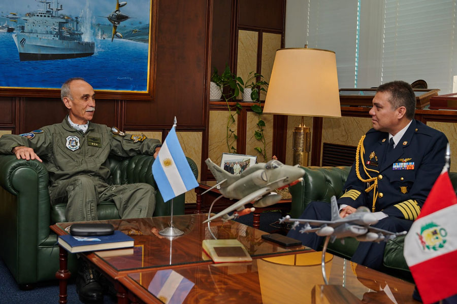 El jefe de la Fuerza Aérea Argentina recibió al nuevo agregado aéreo de Perú