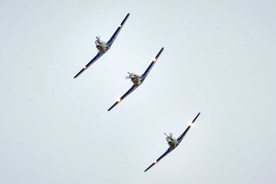 La jornada comenzó con los pasajes aéreos de la Escuadrilla Histórica Mentor de la FAA.