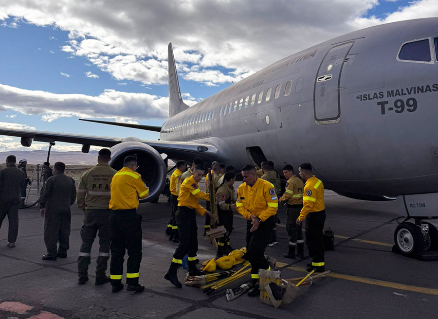 Por otra parte, La I Brigada Aérea, también dispuso una aeronave Boeing 737-700, que recorrió Catamarca, Jujuy y Resistencia para arribar también en la localidad chubutense de Esquel, con la misma finalidad de movilizar a los brigadistas que están afectados a combatir el fuego.