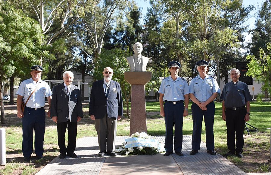 En la V Brigada Aérea, el jefe de Brigada, comodoro Mariano Sebastián Triulzi estuvo acompañado por representantes de entidades aeronáuticas de la provincia de San Luis y Villa Mercedes, autoridades del Instituto Nacional Newberiano – Delegación San Luis, directivos de las Escuelas Técnica N° 17 y Escuela Generativa Jorge Newbery y de veteranos de la Gesta de Malvinas, quienes honraron con su participación este sentido homenaje.