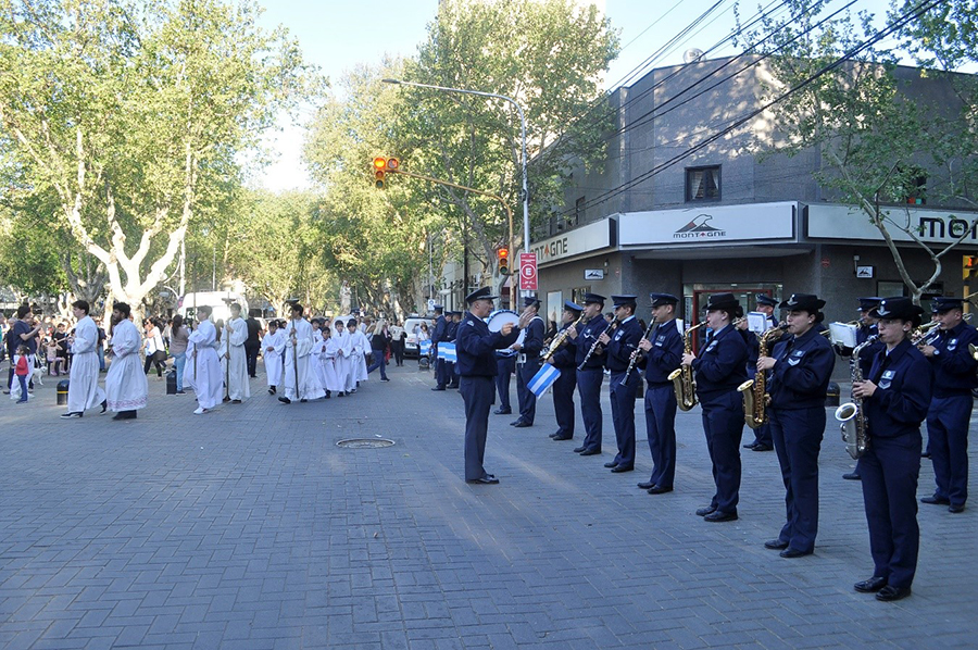 Todos ellos acompañaron con solemnidad a los fieles y transeúntes que se unieron a esta manifestación de fe y devoción. Desfilaron también Defensa Civil, los Bomberos Voluntarios, la Policía Federal y diversas instituciones educativas, cuyos cimientos escolares se erigen sobre la fe.