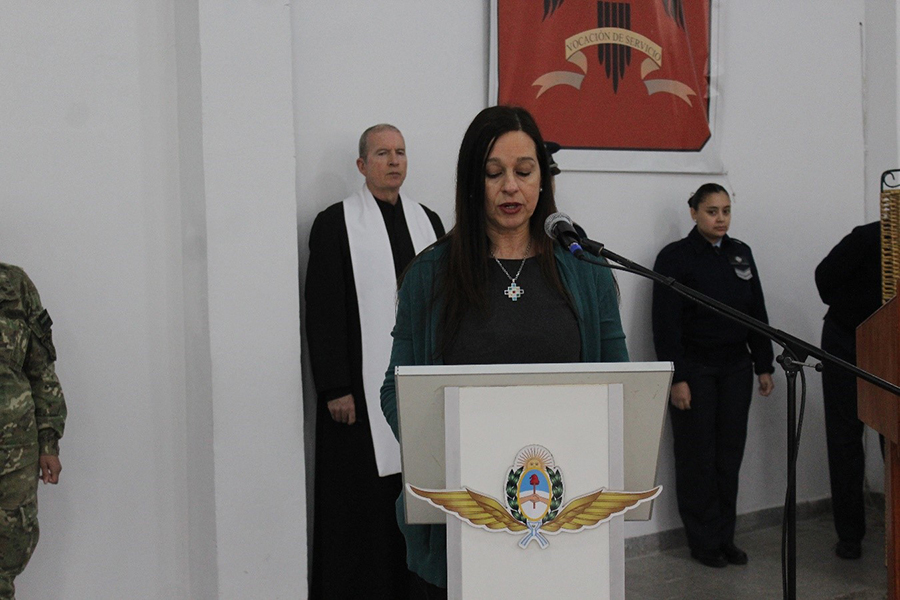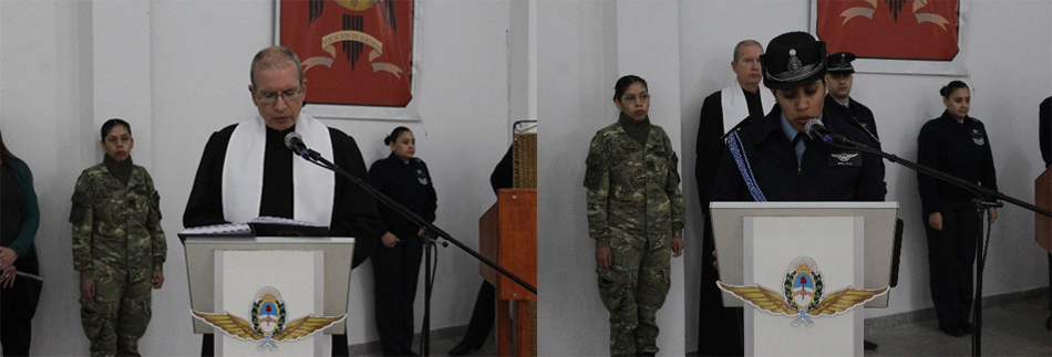 Durante la misma, se entonaron las estrofas del Himno Nacional Argentino. Seguidamente, se llevó a cabo una invocación religiosa a cargo del capellán castrense, presbítero Luis Hetze. A continuación, la ayudante del jefe de la Guarnición leyó el saludo del jefe del Estado Mayor General de la Fuerza Aérea Argentina, brigadier mayor Gustavo Javier Valverde.