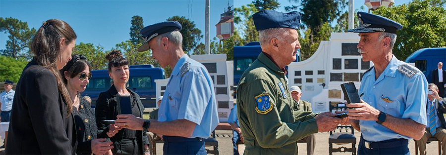 El evento fue presidida por el jefe del Estado Mayor General de la Fuerza Aérea Argentina, brigadier mayor Gustavo Javier Valverde, acompañado del inspector general de la Institución, brigadier Hugo Dirié; ex titulares de la FAA; el secretario general de la Fuerza, brigadier Ricardo Cappabianca; el jefe del Estado Mayor del Comando de Adiestramiento y Alistamiento, brigadier Gonzalo Toloza; el jefe de la II Brigada Aérea, comodoro Maximiliano Ravera, el jefe de Grupo de Reconocimiento Aeroespacial, vicecomodoro Daniel Alberto Gioiosa, veteranos de Guerra de Malvinas, familiares e invitados especiales.
