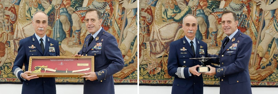 En esta oportunidad, el titular de la Fuerza Aérea Argentina, asistió a reunión en el despacho del jefe de Estado Mayor del Ejército del Aire y del Espacio, general del aire Francisco Braco Carbó, donde ambas autoridades intercambiaron presentes institucionales y conocimientos profesionales.