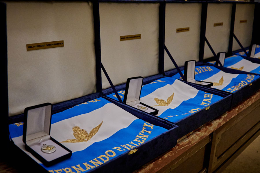 En esta oportunidad, el titular de la Institución pronunció palabras alusivas en las que explicó el motivo por el cual dicha ceremonia se llevaba a cabo en la Escuela de Aviación Militar: "Los señores brigadieres que hoy tuve el alto honor de entregarles su medalla y su banderola, hace más de 40 años atrás, ingresaban por estas dos torres”.
