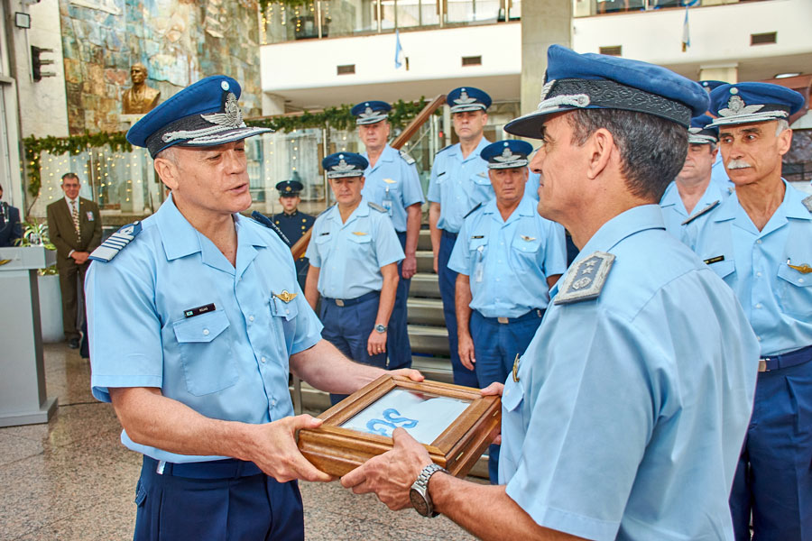 Asimismo, enumeró algunos de los hitos que marcaron sus dos años de gestión, entre los que se encuentran: ceremonias de incorporación de aeronaves; la conmemoración del Bautismo de Fuego y el Aniversario de la Institución; condecoraciones a veteranos de Guerra; la inauguración del memorial de Malvinas en la ciudad de San Carlos de Bariloche y la recepción del Sistema de Armas F-16, entre otros.
