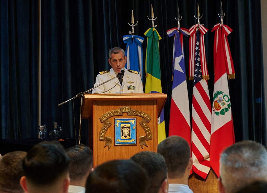 Seguidamente, el director de la Escuela Superior de Guerra Aérea, comodoro Fabián Serrano tomó la palabra: “Ser oficial de Estado Mayor implica comprender que el poder aéreo es mucho más que una herramienta militar: es un instrumento operacional y estratégico al servicio del país. Implica pensar con visión amplia, analizar con rigor, planificar con precisión y, sobre todo, decidir con responsabilidad. Hoy ustedes se incorporan a una tradición que exige excelencia, profesionalismo y liderazgo, pero también, sensibilidad humana, capacidad de trabajar en equipo y compromiso permanente con la defensa de la Patria”.