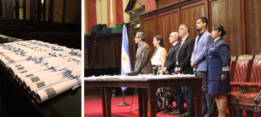 En sus palabras, la oficial relató el rol fundamental que cumplió la FIUBA en su vida: “Hace casi veinte años, yo estaba donde ustedes están hoy, con el corazón lleno de sueños y una mezcla de alegría y nervios que me hacía sonreír sin parar, y me repetía mentalmente: ‘Pude, lo hice, llegué’”.