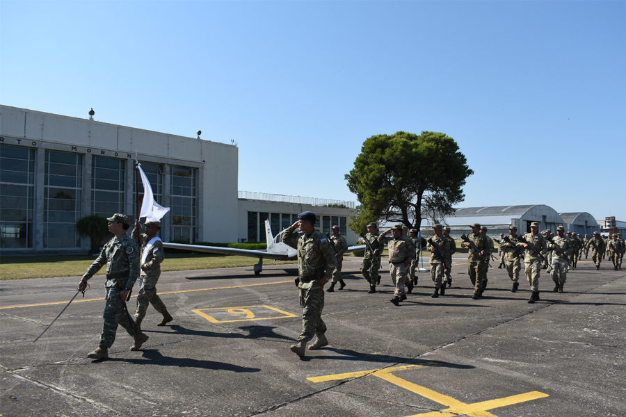 Para finalizar, los integrantes de la unidad realizan el tradicional desfile terrestre entonando las estrofas de la marcha “Alas Argentinas”.