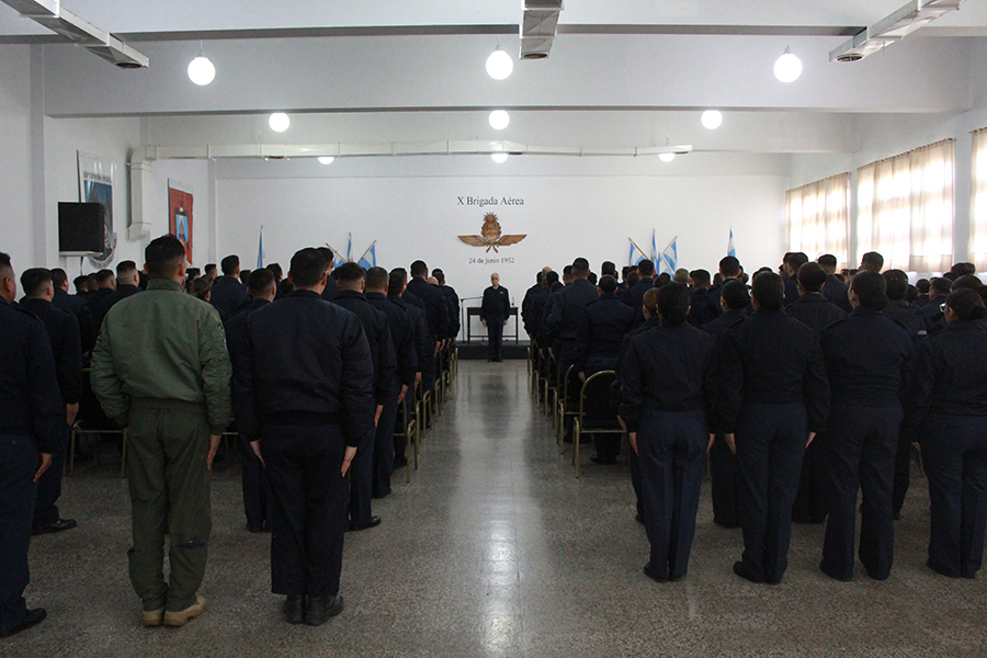 Posteriormente, el brigadier mayor Valverde se dirigió a todo el personal militar de la Unidad en una charla institucional. Tras compartir un almuerzo de camaradería en el Casino de Oficiales, las autoridades recorrieron las instalaciones que incluyó en primer lugar la jefatura de Brigada, el Grupo Aéreo 10 y sus Escuadrones.