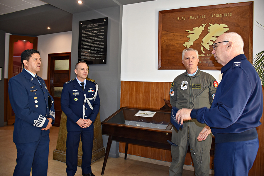 Durante su permanencia en la Unidad, las autoridades y oficiales brasileros pasaron por la jefatura de Brigada y el Grupo 4 de Caza, donde el vicecomodoro Flecha los invitó a recorrer la Sala de Panoplias (lugar emblemático donde se encuentran todas las promociones de la Escuela de Caza) y además aprovehcó la oportunidad para mencionar especialmente a los pilotos de la Unidad que tuvieron participación en la Gesta de Malvinas, destacando su profesionalismo y valor histórico.
